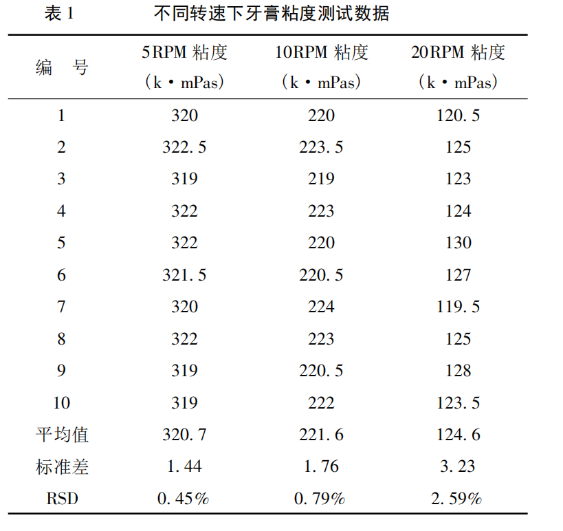 等優(yōu)點(diǎn),所以,增加布氏粘度指標(biāo)來調(diào)整牙膏配方設(shè)計(jì)、指導(dǎo)牙膏生產(chǎn)工藝、控制牙膏產(chǎn)品質(zhì)量具有指導(dǎo)意義。研究了布氏粘度計(jì)