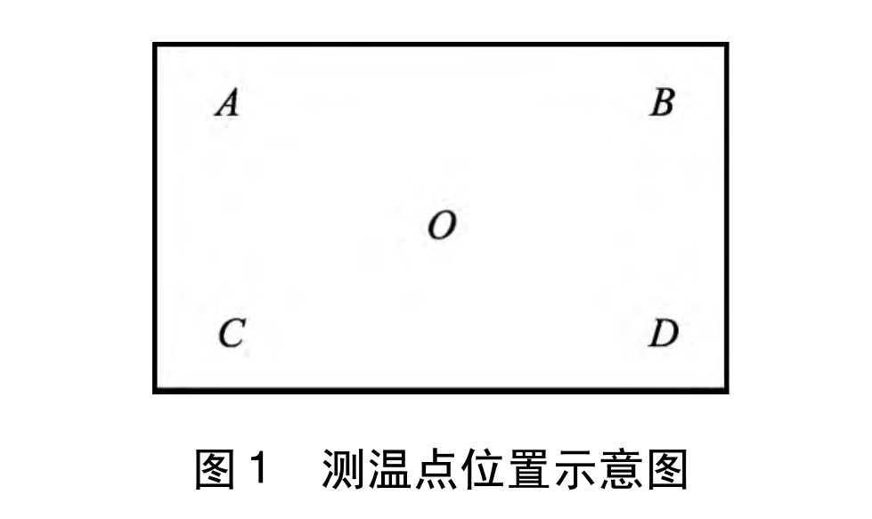 將恒溫水浴加熱到被測溫度點 40 ℃。選取 5個測溫點: 水浴鍋工作區幾何中心 O 點,4 個角的測溫點 ( A,B,C,D) 到