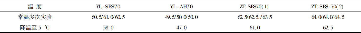 表 4 加熱介質(zhì)是否降溫至 5 ℃對軟化點測定的影響